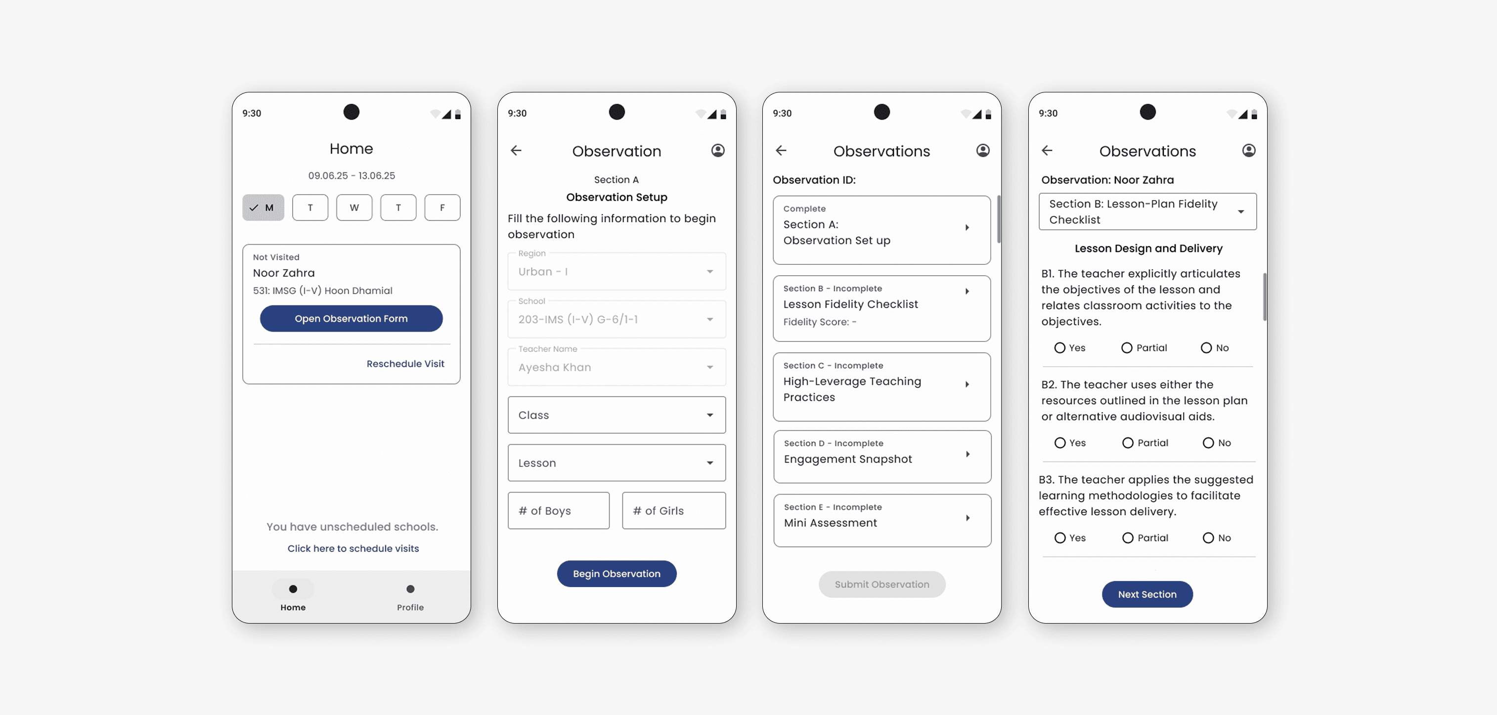 Once the decision was made to replace the outdated Teach Tool, the next challenge was to design a fast, simple, mobile-first observation experience that coaches could use inside real classrooms — often with little time, unstable internet, and multiple contextual distractions.